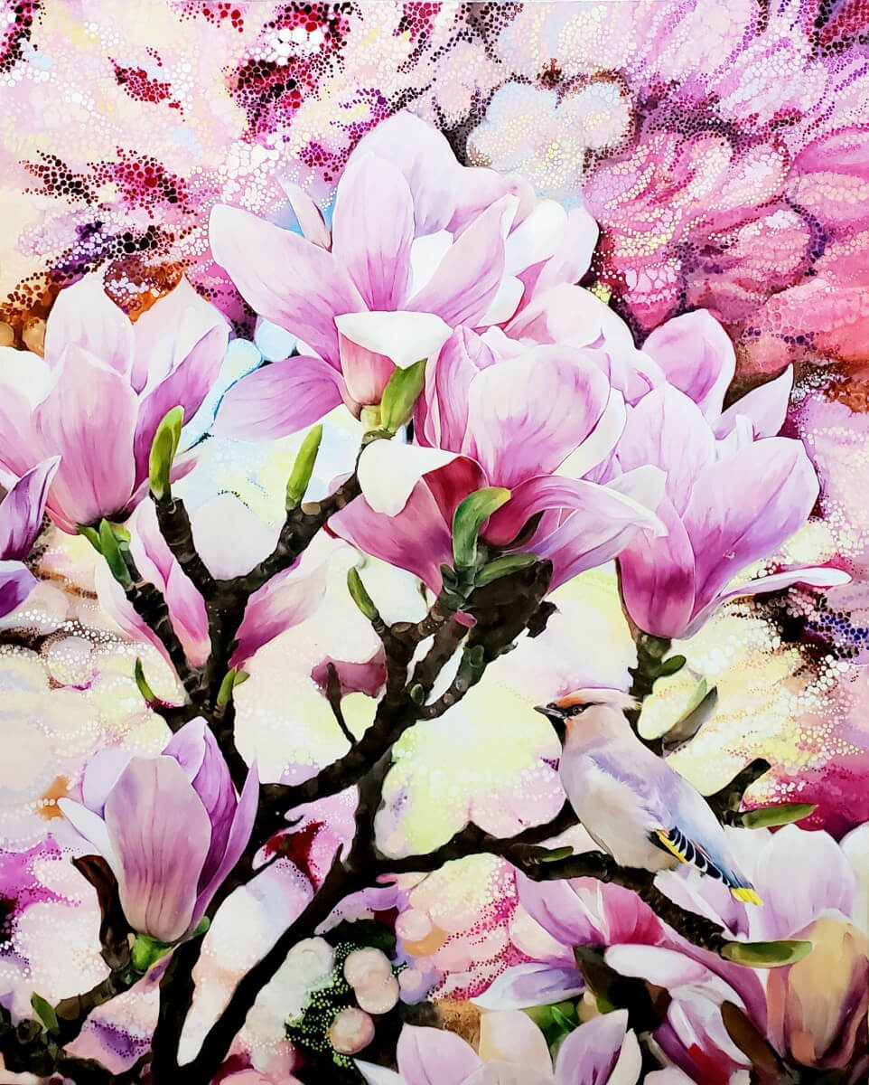 「癒し」をテーマに、花や動物のモチーフを、鮮やかな心地よい色彩と、一筆一筆繊細な筆致で描いた作品20余点を展覧致します。